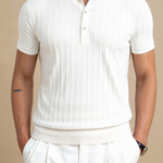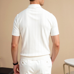 Ta polo majica je popolna za različne priložnosti, od sproščenih izletov do bolj rafiniranih dogodkov. Njene vertikalne črte in gumbasto oblikovanje jo naredijo za stilno izbiro, ki se lahko zlahka preobrazi iz dneva v noč, kar uteleša bistvo sofisticirane elegance.