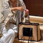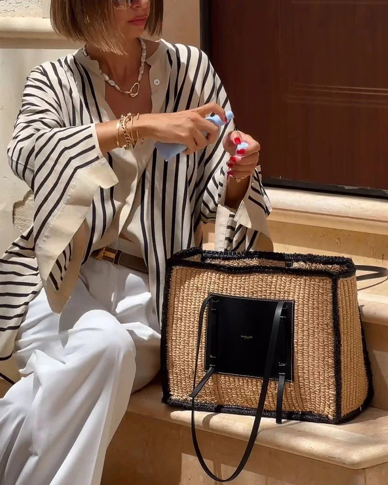 Elegantna srajca s črtastim vzorcem, ki združuje brezčasni stil in udobje. Njena sproščena zasnova omogoča svobodo gibanja, medtem ko minimalističen dizajn naredi to srajco idealno za vsakodnevne in bolj posebne priložnosti. Kos, ki nikoli ne manjka v popolni garderobi.