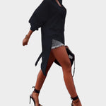 Srajca z razporkom je popolna kombinacija elegance in udobja. Z ohlapnim, oversized dizajnom in stranskimi odprtinami jo lahko nosite tako v sproščenih kot v bolj stilskih kombinacijah. Idealna je za vse ure dneva in za vsako priložnost.
