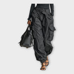 Cargo hlače, ki združujejo praktičnost in moderno estetiko, ponujajo udobje ob vsakem trenutku. Njihova prilagodljiva zasnova se enostavno prilagaja različnim stilom, kar zagotavlja ravnotežje med sproščenim prileganjem in eleganco. Idealne za sproščene videze, pa tudi za bolj prefinjene kombinacije, so kos, ki ne sme manjkati v sodobni garderobi.