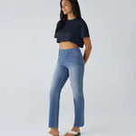 Odkrijte Jeans Hlače z Visokim Pasom – kos, ki združuje vsakodnevno udobje in sodoben stil. Z elastično prileganjem in klasičnim dizajnom so idealna izbira za vse ure dneva.