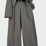 Komplet, ki združuje bustier in jakno v elegantni in moderni liniji. Njegova zasnova poudari silhueto z diskretno eleganco, medtem ko jakna nudi udobje in praktičnost. Idealno za posebne priložnosti in nastope, ki zahtevajo stil in samozavest.