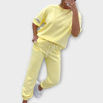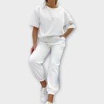 Udoben in eleganten komplet, ki se enostavno prilagodi vsakemu slogu, nudi idealno ravnotežje med vsakodnevnim udobjem in modernim videzom. Njegova prilagodljiva zasnova ga naredi primernega za vse priložnosti, od sproščenih trenutkov do bolj urejenih nastopov. Kosek, ki združuje praktičnost s časovno neomejeno eleganco.