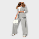 Eleganten komplet, ki se prilagaja vsakemu slogu, daje popoln končni pečat vsakemu videzu. Njegova prilagodljiva zasnova ga naredi idealnega za vse priložnosti, od sproščenih do bolj formalnih. Kos, ki združuje praktičnost in brezčasno eleganco.