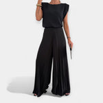 Stilna kombinacija, ki popolnoma združuje udobje z diskretno eleganco. Idealno za vroče dni, ponuja svobodo gibanja in brezskrbno stilnost ob vsaki priložnosti.