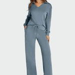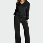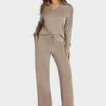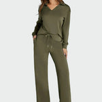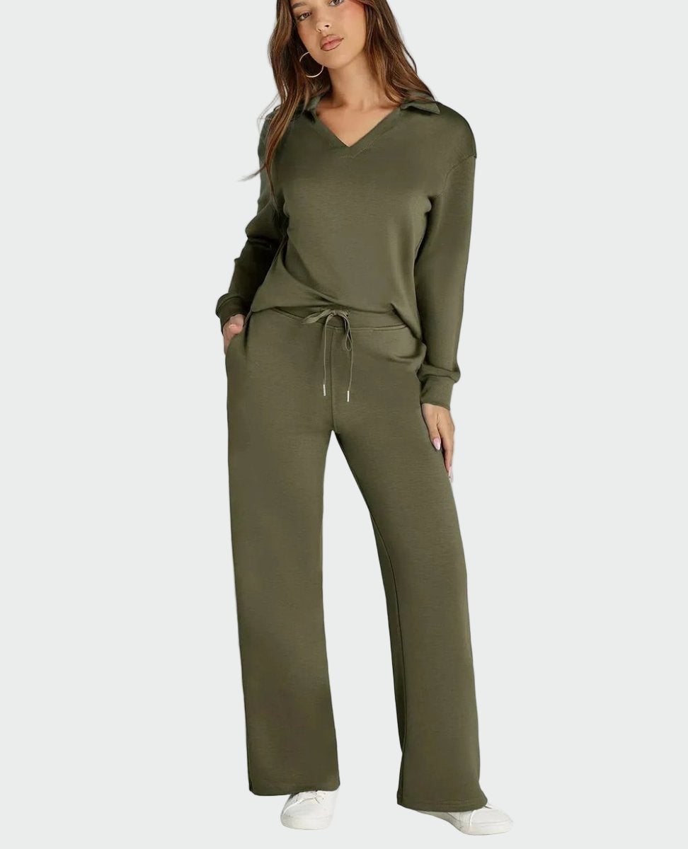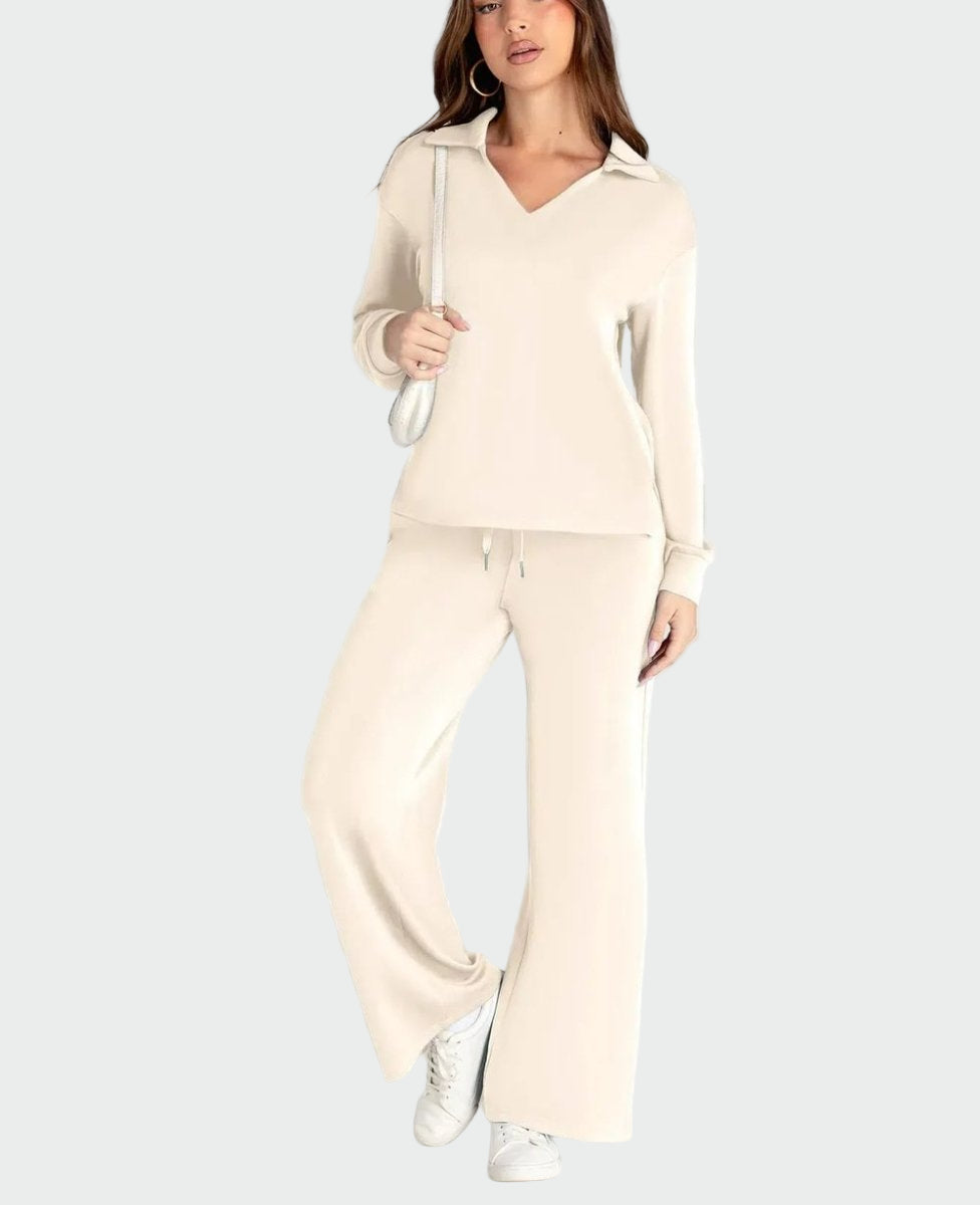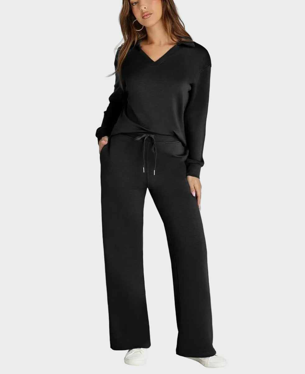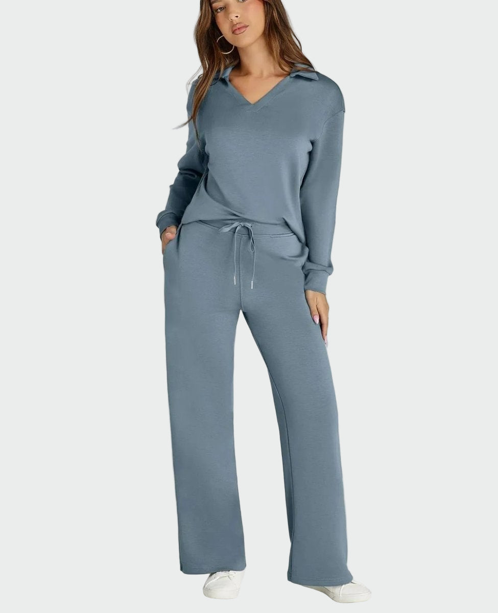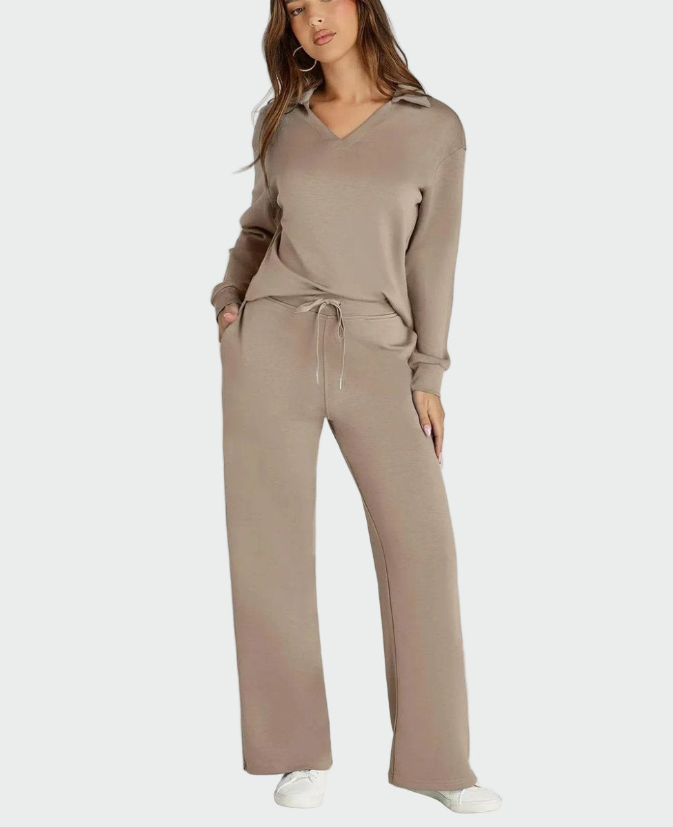 Praktičen in eleganten set, zasnovan za udobje med potovanji. Ohlapna zasnova omogoča svobodo gibanja, medtem ko minimalistični stil omogoča vsakodnevno uporabo, pa tudi za posebne priložnosti. Združuje udobje in brezčasno eleganco.