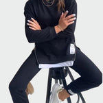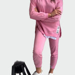 Dvobarvni komplet, ki združuje udobje in eleganco s sproščenim krojem. Zgornji del in hlače ustvarjajo celoten videz, ki ustreza vsaki priložnosti. Mehka tekstura in sodoben dizajn ga naredijo idealnega za vsakodnevne, pa tudi bolj posebne trenutke.
