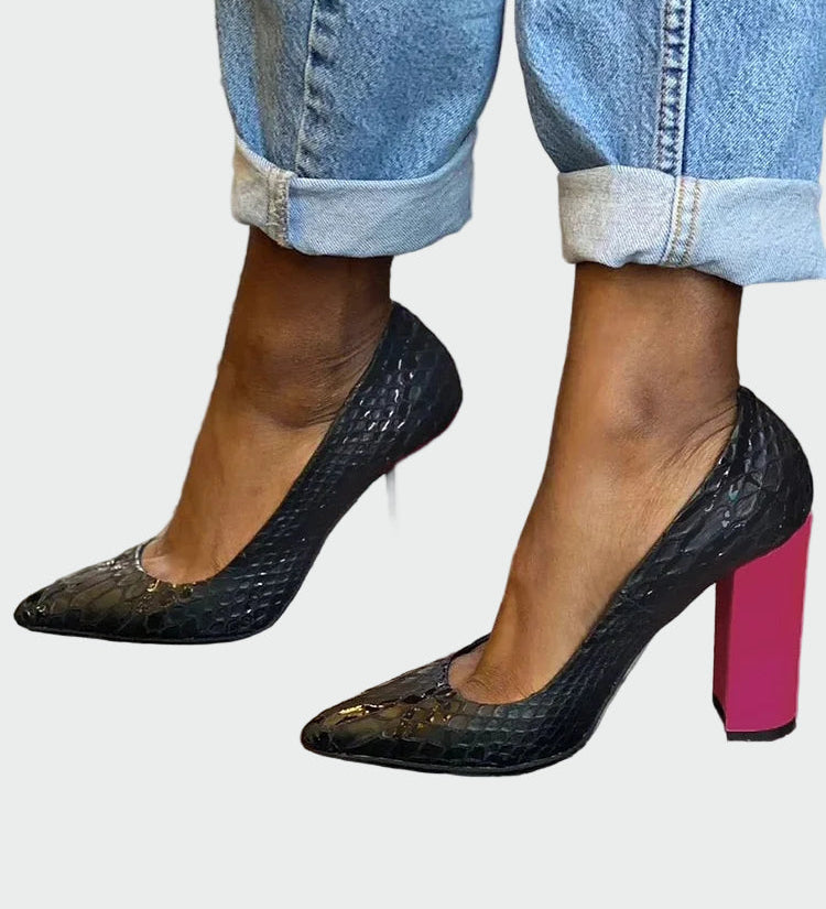 Čevlji z kvadratnim nosom in debelim petnim delom