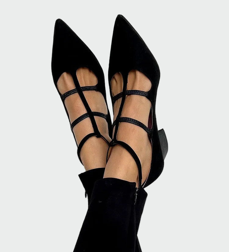 Čevlji z ostrim nosom in trakovi