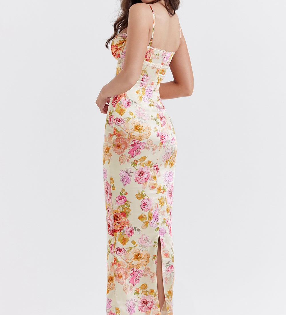 Rožnato | Satenasto cvetlično obleko