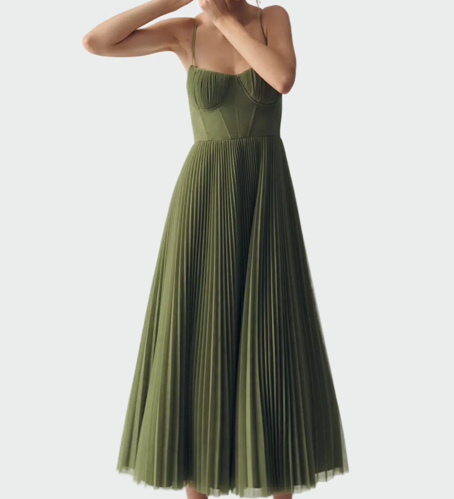 Dolga obleka z elegantnimi gubami in izpopolnjenim dizajnom