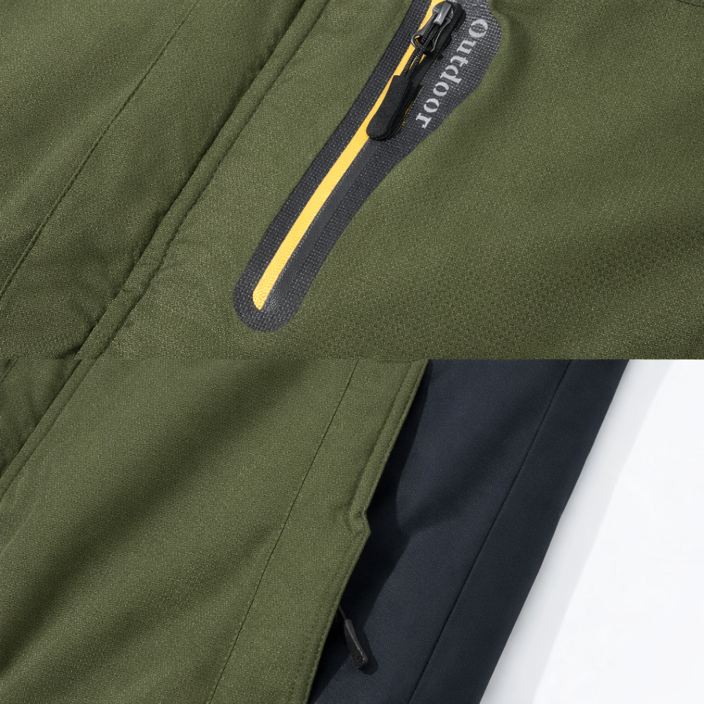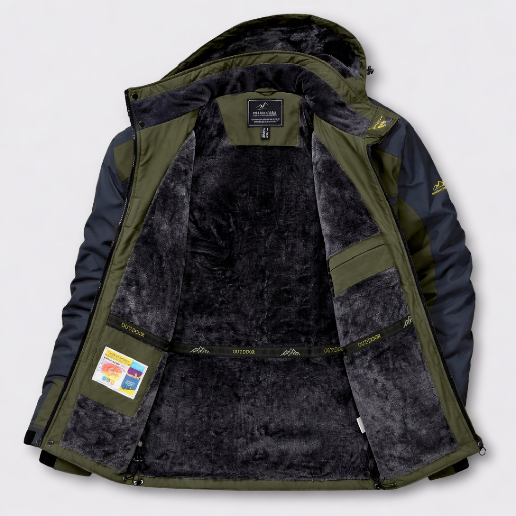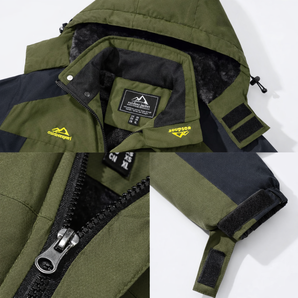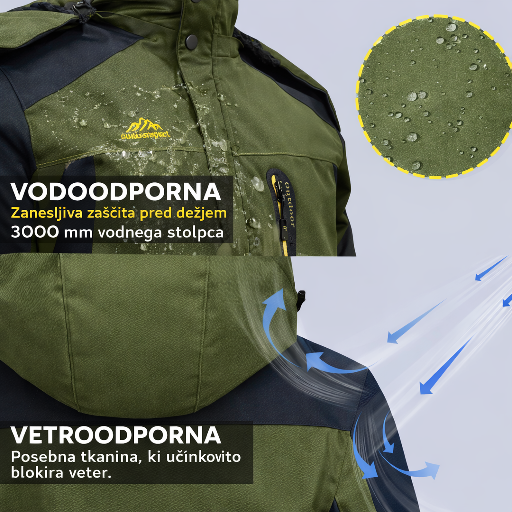 Vodoodporen zunanji material (3000 mm vodnega stolpca H₂O) zanesljivo ščiti pred vlago, medtem ko vetroodporna tkanina in topla flis podloga zagotavljata optimalno zaščito in udobje.