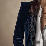 Nuria™ elegantna žametna jakna ni zgolj kos oblačila – je izraz sloga, udobja in samozavesti. Razkošen žameten material in natančna izdelava zagotavljata prijeten občutek pri nošenju, hkrati pa poskrbita, da izžarevate eleganco v vsaki situaciji. Privoščite si občutek samozavesti, ko se počutite dobro v svoji koži in obenem izgledate brezhibno.