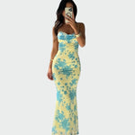 Impozantna in ženstvena obleka z edinstvenim rožnatim vzorcem, ki na eleganten način poudarja silhueto. Dekolte z drapirano podrobnostjo prinaša eleganco, medtem ko prilegajoč kroj poudarja obline. Idealna za posebne nastope, večere in elegantne povabljene dogodke.